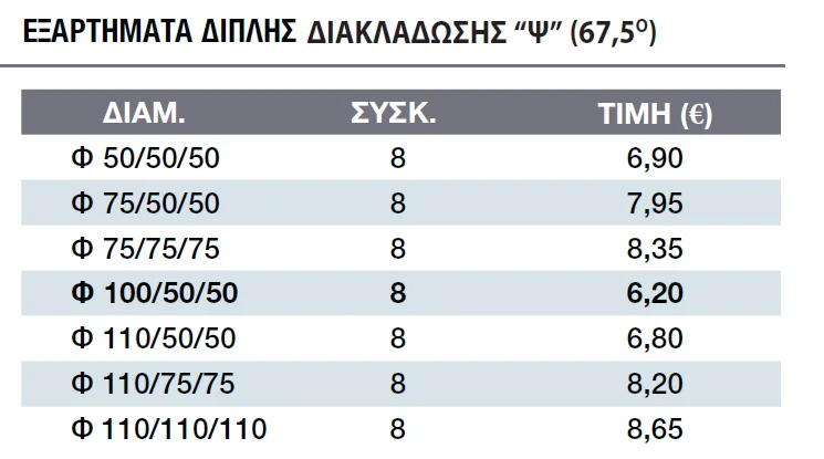 ΕΞΑΡΤΗΜΑΤΑ ΔΙΠΛΗΣ ΔΙΑΚΛΑΔΩΣΗΣ ΄΄Ψ΄΄(67,5°) ΕΞΑΡΤΗΜΑ ΠΟΛΥΠΡΟΠΥΛΕΝΙΟΥ FASO PP